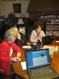 Pat, Peep and Lucy, in the picture, are working themselves back in time with the help of online resources and their laptop computers.
