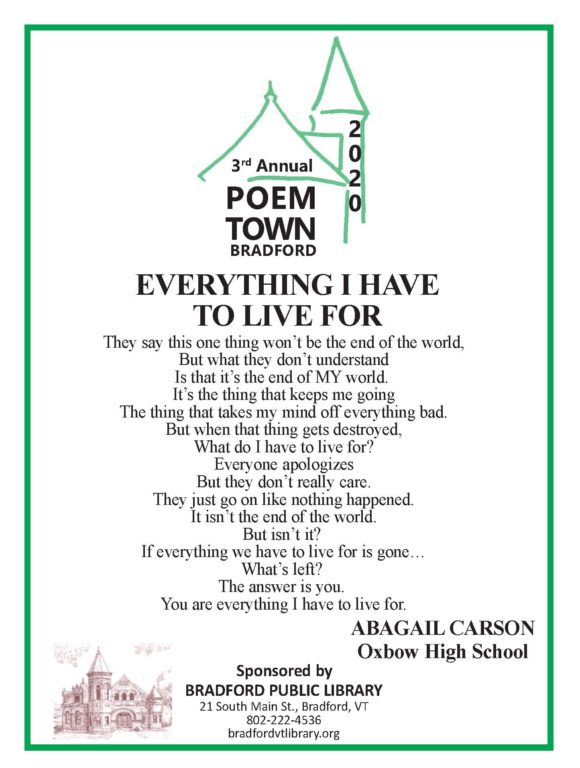 Bradford Poem Town 2020 Poem Town Daily! 4/10 ByGail Trede April 11, 2020April 11, 2020 Back to Poem Town 2020