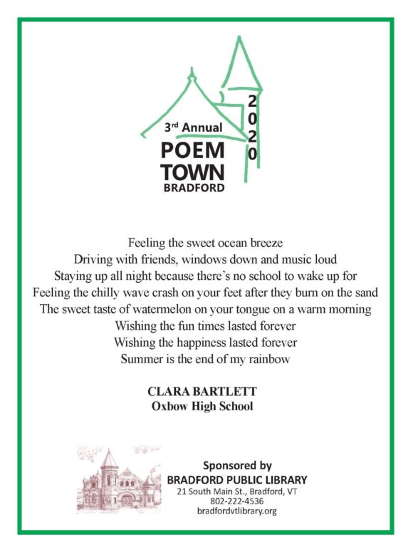 Bradford Poem Town 2020 Poem Town Daily! 4/16 ByGail Trede April 21, 2020April 21, 2020 Back to Poem Town 2020