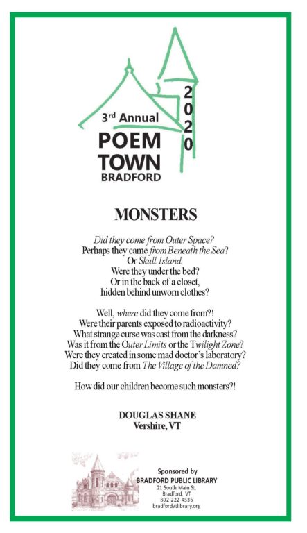 Bradford Poem Town 2020 Poem Town Daily! ByGail Trede April 21, 2020April 22, 2020 Back to Poem Town 2020