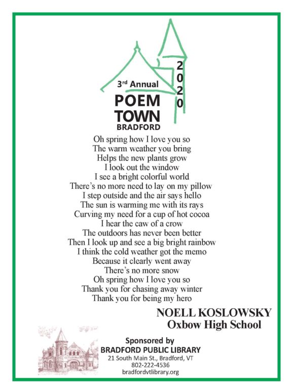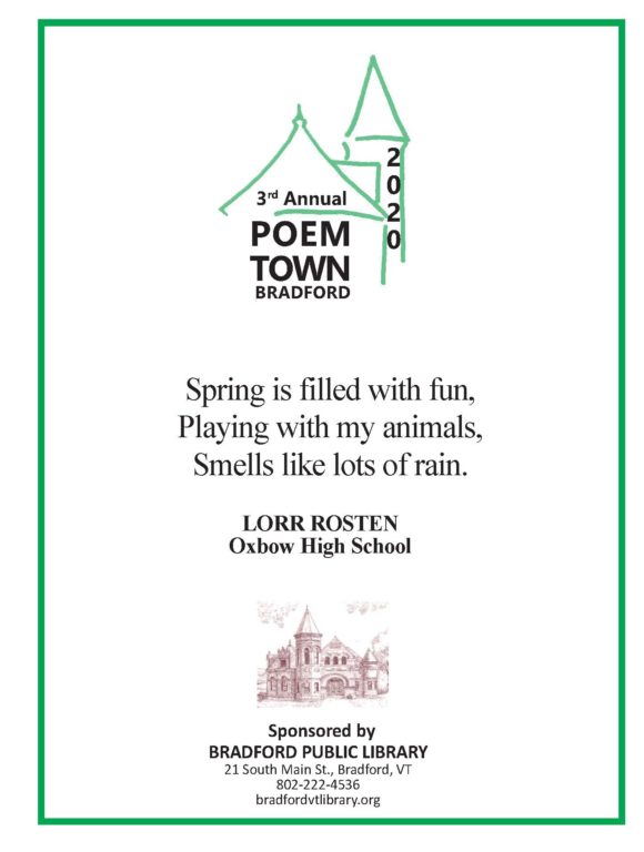 Bradford Poem Town 2020 Poem Town Daily! 4/28 ByGail Trede May 11, 2020May 11, 2020 Back to Poem Town 2020