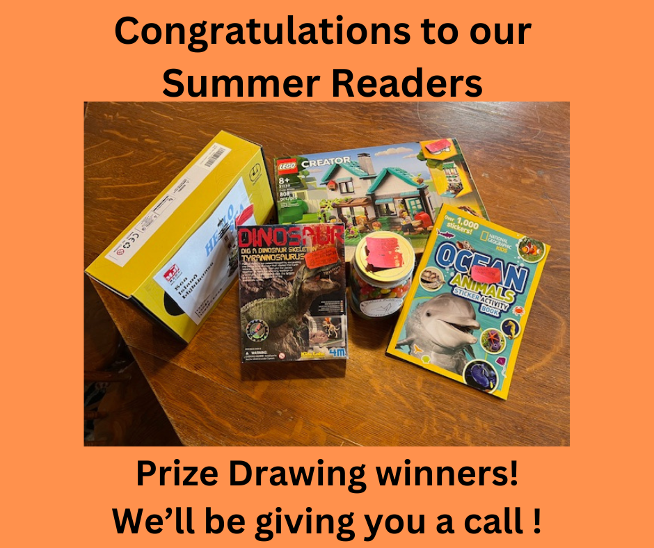 Events | Home Page | Programs - Adults | Programs - Kids Corner | Programs - Teens Summer Drawing Winners! ByGail Trede August 21, 2024August 21, 2024