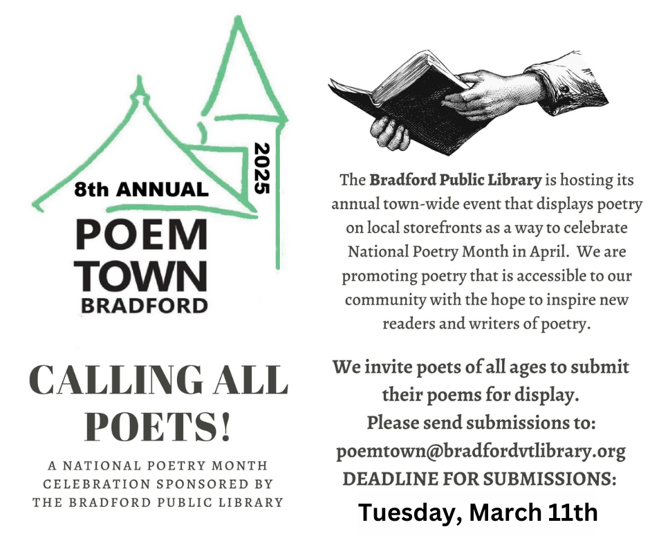 Events | Home Page | Programs - Adults | Uncategorized April is National Poetry Month! ByGail Trede February 26, 2025February 26, 2025